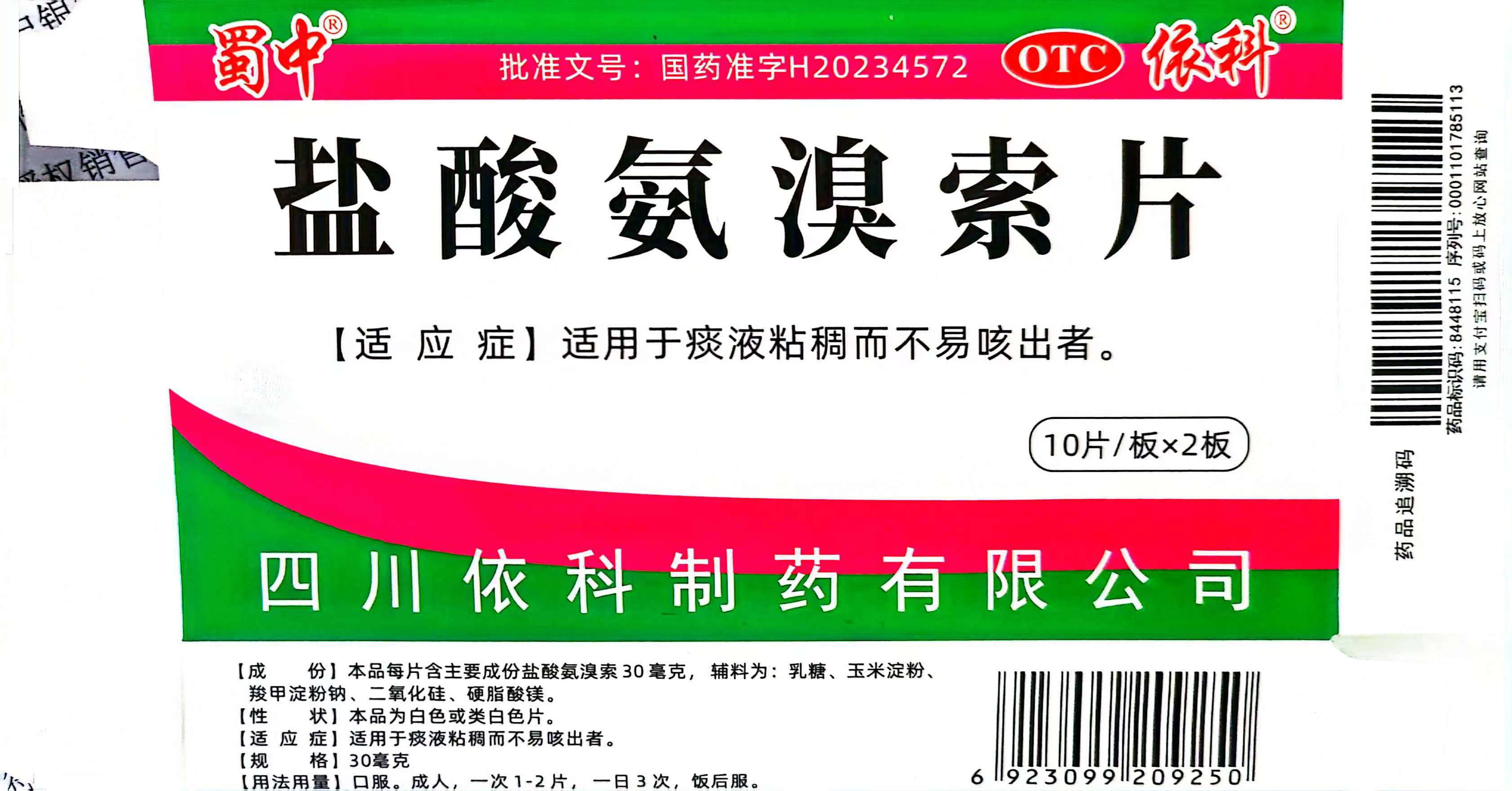 商品名称:盐酸氨溴索片/依科