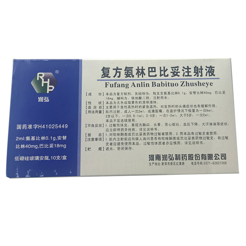 商品名称:复方氨林巴比妥注射液/润弘安痛定